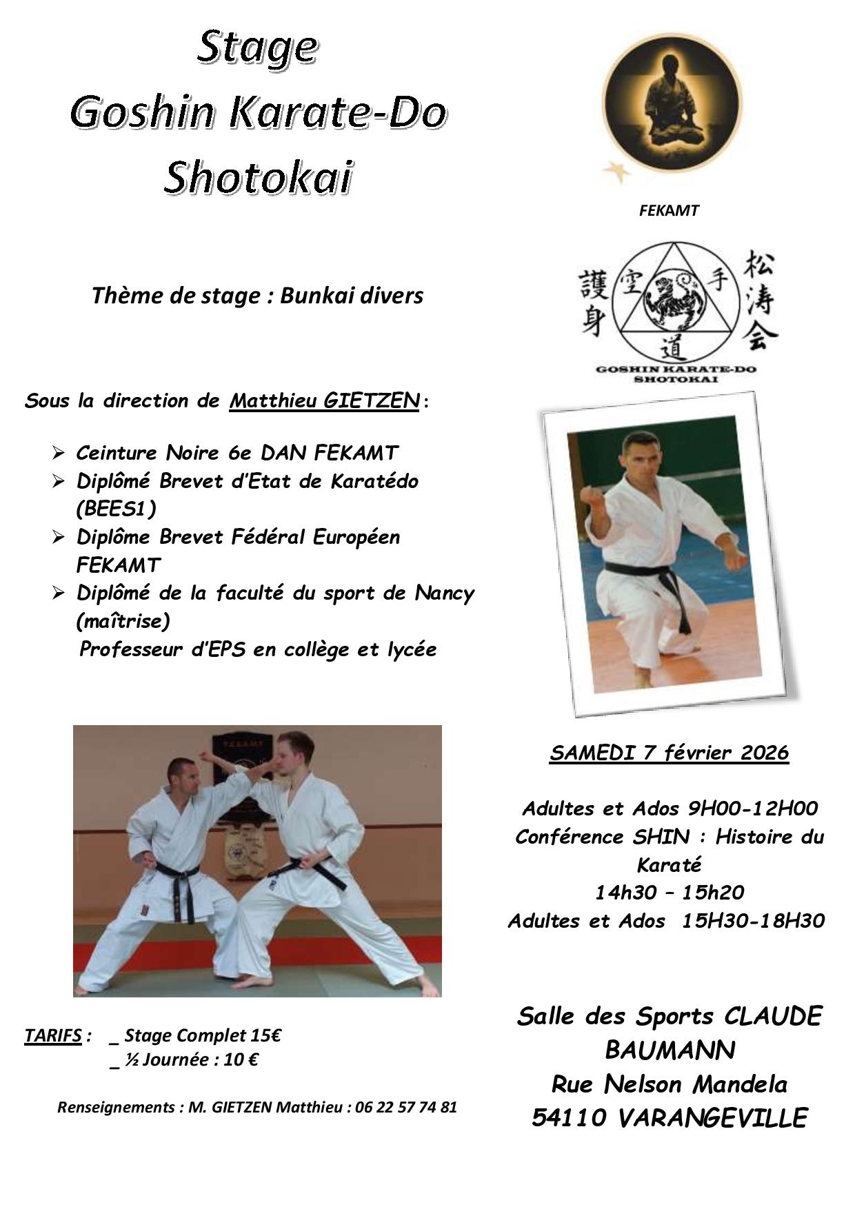 Club : Stage GOSHIN Karate-Do SHOTOKAÏ 7-02-26